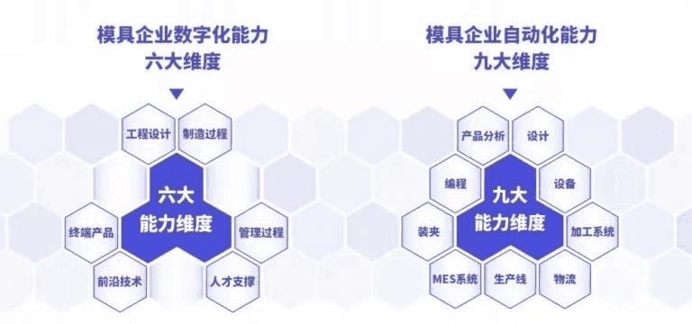 根据《中国模具工业协会团体标准管理办法》的规定,《模具企业数字化能力评定方法》(T/CDMIA A004—2021)、《模具企业自动化能力评定方法》(T/CDMIA A005—2021)两项团体标准,已于2021年10月1日起实施。两项标准采用五等级评定方法对企业能力水平进行评定,从低到高的等级分别为规划级、规范级、应用级、优化级、引领级。