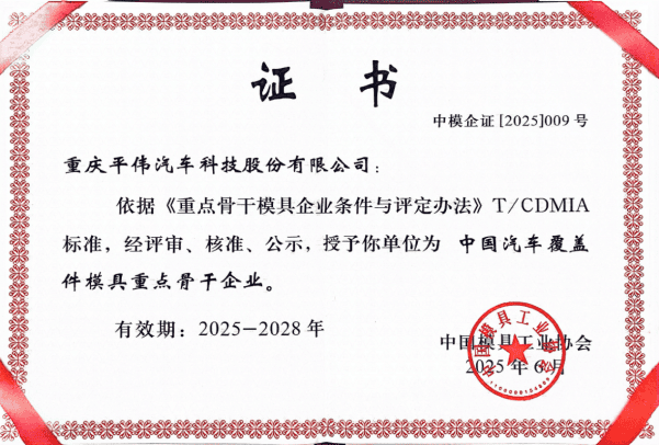 此次再度荣获“中国重点骨干模具企业”荣誉称号,不仅是对公司长期以来深耕模具制造领域、持续创新发展的高度认可,更是其在行业内技术领先地位与市场影响力的有力见证。未来,平伟科技将继续秉持创新发展的理念,不断提升技术水平与产品质量,为客户提供更优质的服务,为推动中国汽车模具行业的发展作出更大贡献。