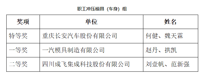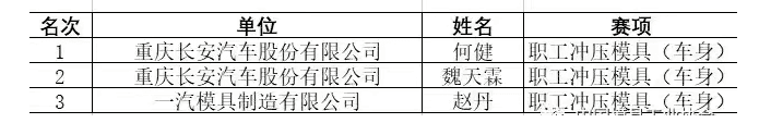 7月29日--31日,中国模具工业协会根据《人力资源和社会保障部关于组织开展2021年全国行业职业技能竞赛的通知》(人社部函〔2021〕37号)的要求,在宁波举办了全国行业职业技能竞赛——第十九届全国机械行业职业技能竞赛(模具)即“北京精雕杯”模具竞赛。重庆模具企业参赛队伍在此次竞赛中斩获佳绩,重庆长安汽车股份有限公司模具事业部何健、魏天霖两人团队英勇折桂,获职工冲压模具(车身)组特等奖,同时两位选手个人成绩分别获得单项第一、二名,重庆东科模具制造有限公司选手团队荣获职工压铸模具组三等奖佳绩!