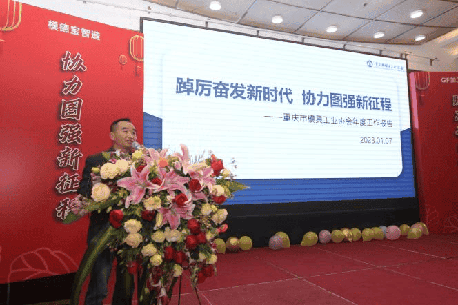 毛琼会长致欢迎辞,代表协会对各会员单位及关心支持协会工作的社会各界人士表示感谢,对与会嘉宾的到来表示热烈欢迎。毛会长提到:近年来,我国模具产业全球竞争力日渐增强,在新能源领域快速发展的前提下,推进了模具行业企业的发展,必将经历行业的转型升级,“专精特新”就是模具行业企业发展的主要方向。在这一年的工作中协会很好地发挥了桥梁和纽带作用,为重庆模具工业的技术进步与行业发展做出了应有的贡献,面对疫情带来的满目疮痍,面对前行之路的重重考验,毛会长呼吁每一个奋斗的模具人坚定信念,起而行之,拧成一股绳,铆足一股劲,唯实惟先,善作善成,应变局,开新局,绝不躺平,绝不由天,共同努力,促进行业模具企业高质量发展,贯彻落实好党的二十大作出的重大决策部署。