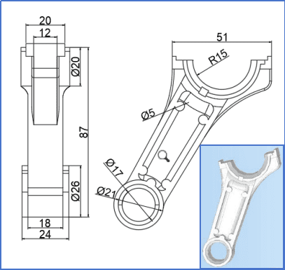 图1连杆体零件模型及尺寸