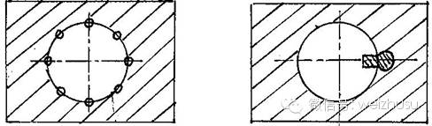 上图所表示的是底部大面积镶嵌组合式凹模。